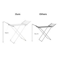 De to foldbare sidevinger rummer t-shirts, håndklæder og småt tøj, mens de 8 centrale stænger tager resten. Når vasketøjet er færdigt, klappes stativet nemt sammen og opbevares diskret bag en dør eller i et skab. Perfekt til lejligheder, bryggers og alle, der ønsker en effektiv og smart løsning til tøjpleje i hjemmet.
