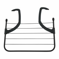 Stativet har flere parallelle stænger og kroge, der gør det let at sætte på og tage af igen. Den diskrete, mørke farve passer ind i de fleste hjem og ser elegant ud ved vinduet eller over radiatoren. En enkel og effektiv hjælper i kategorien tørrestativer.