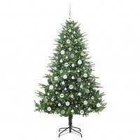- Byggekvalitet: Det moderne kunstige juletræ er lavet af høj kvalitet PVC, der både er stærkt og ser realistisk ud. Det holder i lang tid og bevarer sit flotte udseende. En solid metalstøtte giver ekstra styrke, så det kan bruges både indendørs og sporadisk udendørs.
