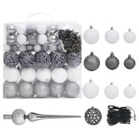 Kunstigt juletræ med lys og kuglesæt 240 cm hvid