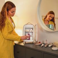 Hold dine favoritprodukter friske og lige ved hånden med mini køleskabet Cecotec CoolingBeauty 6000. Den kompakte 6 l kapacitet passer perfekt på badeværelset, soveværelset eller kontoret. Det elegante, lyserøde design er prydet med et praktisk spejl på fronten og blødt LED-lys - ideelt til hurtig opfriskning eller makeup-rutinen.