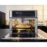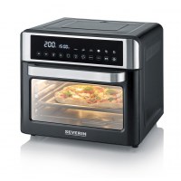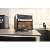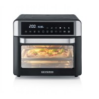 SEVERIN TO 2077 er en kompakt miniovn på 25 l, der passer perfekt til små køkkener, studieboliger eller som ekstra ovn. Den rummelige kapacitet giver plads til daglig madlavning – fra sprød pizza til ovnretter – mens det stilrene design i sort og sølv gør den nem at placere på køkkenbordet. Det overskuelige betjeningspanel med knapper gør det let at indstille tid og funktioner.