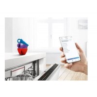 Maskinen er halvintegreret med sort/rostfri betjeningspanel og tydeligt display. Du kan starte med forsinkelse op til 24 timer og se resttid. Overkurven kan justeres for bedre plads, og selv-rens-funktionen gør vedligeholdelsen enkel. Modellen understøtter fjernbetjening via smartphone/tablet og har børnesikring.