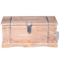 Opbevaringskassen giver rigelig opbevaringsplads til tøj, magasiner, bøger, værktøj og andre ting. Den har en lås foran og to håndtag i siderne. Denne trækasse kan med sin stabile og flade top også bruges som et sofabord, stuebord, sidebord, endebord osv. Opbevaringskisten er håndlavet af massivt akacietræ. Det fine håndværk og den smukke struktur i træet gør hvert møbel unikt.