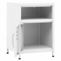 Sengebordet er lavet af stål, hvilket gør det slidstærkt og let at rengøre. Skabet har 1 åben hylde og 1 låge, hvilket giver rigelig med plads til at holde dine dvd'er, multimedieapparater, bøger og småting pænt organiseret og indenfor rækkevidde. Bunden er forsynet med nivelleringsskruer, så du kan justere højden efter behov.