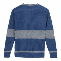 Trøjen er fremstillet af 100 % akryl, som føles behagelig mod huden og holder formen. Den blå farve med brede kontraststriber gør den nem at style med jeans eller chinos, så du får en alsidig overdel, der passer til de fleste outfits.