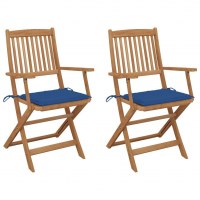 Foldbare havestole 2 stk. med hynder massivt akacietræ