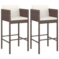 Barstole 2 stk. med hynder polyrattan brun