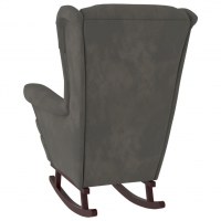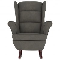 Gyngestol med ryglæn mørkegrå fløjl og massivt træ