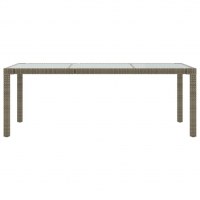 Havebord 190x90x75 cm hærdet glas og polyrattan grå