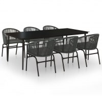 Dette spisebordssæt har et pulverlakeret stålstel, som gør det robust og stabilt til daglig udendørs brug. Glasbordpladen er let at rengøre med en fugtig klud, og den er perfekt til at holde mad, drikke og pyntegenstande. Terrassestolene er fremstillet af PVC-rattan, hvilket gør dem slidstærke samt vejr- og UV-bestandige. Hver stol leveres med en aftagelig, tykt polstret hynde for øget komfort, når du slapper af.
