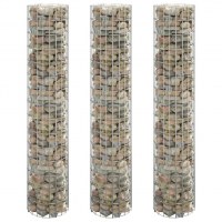 Rundt gabion-havebede 3 stk. Ø30x150 cm galvaniseret stål