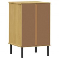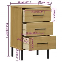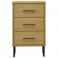 Sengebord med metalben OSLO massivt fyrretræ brun