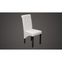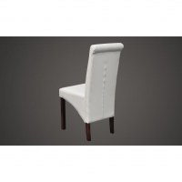 Dette sæt, som består af 4 komfortable og store spisebordsstole, har et antikt design og ergonomiske formede sæder og ryglæn. Benene er lavet i massivt træ i en mørkebrunsbehandlet farve, og hjørnerne er afrundede for ekstra sikkerhed. Stolene er nemme at vedligeholde og rengøre. Sæderne og ryglænene på disse spisestole er polstrede med slidstærkt kunstlæder.