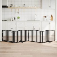 Hundegitter med dør, foldbar, 4 paneler, sort, 320 cm, poppeltræ