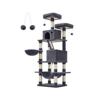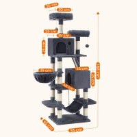 Giv din kat et helt eget univers med dette høje kattetårn på 168 cm. Med 5 niveauer og korte trin på 25–30 cm kan både killinger og ældre katte nemt komme op og ned. Her får de alt i ét: 2 bløde udsigtsplatforme, 2 hyggelige kattehuler, en fluffy kurv, hængekøje med legetov og to pompomer til leg – et sandt fristed til både hvile og aktivitet.
