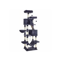 Her får du et komplet kattetårn: 2 polstrede udsigtsplatforme til at holde øje med hjemmet, 2 hyggelige huler til trygge lure, en blød kurv, en komfortabel hængekøje og sjove pompomer med legetov. Med 13 kradsepæle og en kradserampe kan poterne få fuld skrabe- og strækkeglæde – og dine møbler får fred. Rampen fungerer samtidig som lille stige, så killinger og ældre katte let kan komme op.