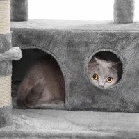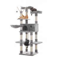 Klatretræ til kat – FEANDREA, XXL kattetræ med hule, 164 cm, lysegrå