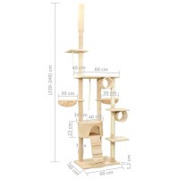 Kradsetræet har en justérbar stolpe, der kan fastgøres i loftet, og højden kan justeres fra 220 til 240 cm. Det har en robust og stabil konstruktion, som beskytter din kat. Sisalstolperne tilfredsstiller kattens kradseinstinkter. Platformene er perfekte steder til at hvile og observere omgivelserne. Når din pelsede ven bliver træt, kan den tage en lur i kurvene eller slappe af i huset eller tunnelen. En stige medfølger også for ekstra underholdning.