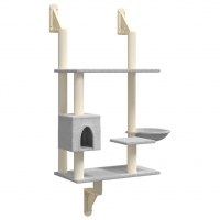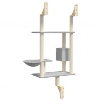 - Robust konstruktion: Det væghængte kradsetræ er forstærket med robuste, trekantede støttebeslag, som giver sikkerhed og stabilitet. Det giver din kat mulighed for at lege og hvile.