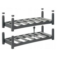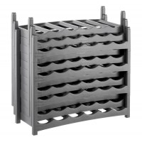 Vario-systemet er stablebart, så du kan udbygge i højden efter behov. Samtidig er reolen sammenklappelig, hvilket gør den nem at flytte og pakke væk, når pladsen skal bruges til andet. Den robuste konstruktion holder flaskerne sikkert liggende – perfekt til både vin, bobler og andre flasker i standardstørrelse.