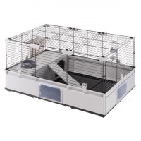 FERPLAST Modular 2 er et rummeligt bur til kanin og marsvin, der kombinerer sikkerhed og praktisk indretning i én løsning. Buret har en smart, modulopbygget konstruktion, så du kan indrette området med rampe og hus, hvor det passer bedst. Med skål, høhæk, drikkeflaske og lille hus får dine kæledyr et funktionelt hjem, hvor daglig fodring og pleje er let.