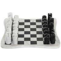 Skakspil i marmor - , hvid/sort, 35,5 cm