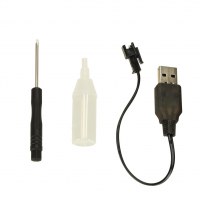 Sættet leveres komplet med bil, to controllere, opladekabel, skruetrækker og beholder til vand. Perfekt til hjemmebrug under voksent opsyn og til børn, der vil udfordre motorik, koordination og fantasi med fjernstyret legetøj.