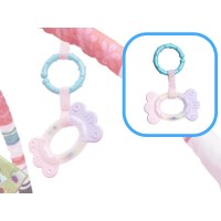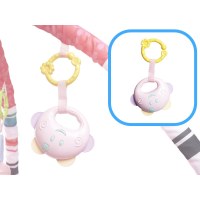 Skab en tryg og sjov legezone til den mindste med denne multifunktionelle aktivitetsmåtte. Måtten kan bruges fra de allerførste dage og vokser med barnet – fra tid på ryg og mave til de første siddestunder. De bløde buer med farverige ophæng motiverer til at række ud, gribe og styrke muskler i nakke, arme og ben. Den lyserøde base er prydet med søde dyre- og blomstermotiver, der fanger blikket.