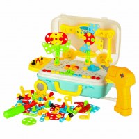 Byggelegetøj med skruer og boremaskine – 258 dele i kuffert