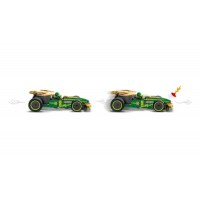 - Ikonisk grøn racerbil med guld- og dragedetaljer