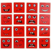 - Konkurrencespil: Træk et kort og byg ansigtet hurtigst med klodserne