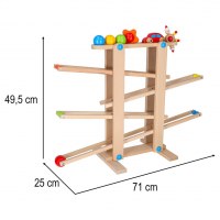 - Stor træ-kuglebane med flere skrånende niveauer for dynamisk leg