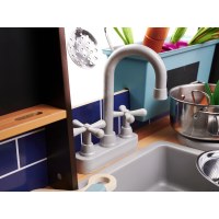Det store køkken i afdæmpede farver fungerer både som legetøj og dekorativt element på værelset. Alle trædele er omhyggeligt slebet og malet med ikke-giftig maling. Ovnens rude er i transparent, holdbar plast.