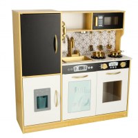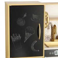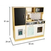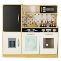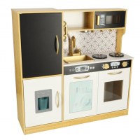 Legekøkken i træ til børn med køleskab – guld