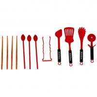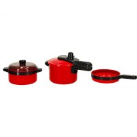 Legetøjskøkken – sæt med gryder, service og tilbehør, 35 dele (rød)