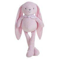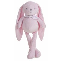 Kaninbamsen har et venligt broderet ansigt, lange ører og en lille, prikket krave, som giver et charmerende udtryk. Overfladen er i blødt polyester, der føles rart mod huden og er velegnet til daglig brug. Den lyserøde farve gør bamsen ekstra attraktiv for børn og passer flot ind på børneværelset.