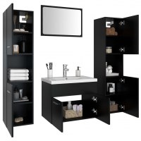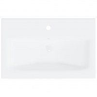 Møbelsættet består af et vaskeskab, to højskabe, en indbygget håndvask og et spejl. Det flotte vaskeskab har et rum, og toppen er ideel til at holde vasken. Hvert højskab har fem rum og to låger, hvilket tilbyder rigelig med opbevaringsplads på dit badeværelse. Vaskekummen er lavet af keramik og er ikke blot en praktisk ting til daglig brug, men vil også pynte i dit hjem. Takket være sit trendsættende og moderne design vil denne håndvask passe til enhver indretning. Vasken har et overløb, så vandet kan løbe ud, når den bliver for fyldt. Spejlet tilføjer et glimrende look i din boligindretning. Derudover er dette badeværelsessæt let at rengøre med en fugtig klud.
