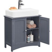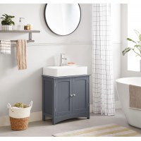 Skab ro og orden på badeværelset med dette underskab til vask fra VASAGLE. Det fritstående møbel rummer dine daglige nødvendigheder bag to drejelige låger med knopgreb og hjælper samtidig med at skjule rør under vasken for et pænt og harmonisk udtryk. Den klassiske grå farve passer flot ind i både moderne og mere rustikke badeværelser.