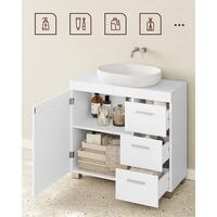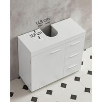 Skabet er lavet af robuste MDF‑plader og leveres med vippesikring for sikker og stabil montering. Det passer under mange fritstående vaske takket være en udskæring til sifon, så du kan udnytte pladsen optimalt i små og store badeværelser.