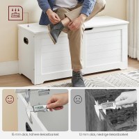 To robuste sikkerhedshængsler holder låget stabilt åbent ved 60° eller mindre og lukker blidt, når der kun er 5 cm tilbage – ingen klemte fingre. Sideskårne håndtag gør kisten let at flytte rundt, når du vil ommøblere eller gøre rent.