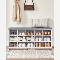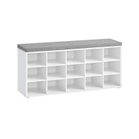 Giv entréen ro og orden med en stilren skobænk med sæde. De 15 rum holder sko, sneakers og hæle organiseret, så du hurtigt finder parret på vej ud ad døren. Den bløde pude i grå gør det behageligt at sidde, når du tager sko på og af, og den lange top fungerer også som et diskret sidde- eller afsætningssted.