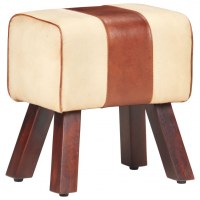 Bænk 38 cm gymnastikbuk ægte læder og massivt mangotræ brun