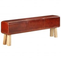 Bænk gymnastikbuk 160 cm ægte læder massivt akacietræ brun
