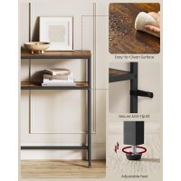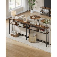 Giv entréen, stuen eller soveværelset et moderne løft med dette slanke konsolbord. Den smalle profil passer perfekt i trange gange, under vinduer eller bag sofaen, mens to rummelige hylder holder bøger, planter og hverdagsting lige ved hånden. Det stilrene samspil mellem brun trælook og sort stål tilfører et moderne udtryk til enhver indretning.