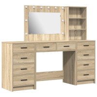 - Konstrueret Træ: Dette sminkebord er lavet af kvalitets konstrueret træ, som kombinerer stil og holdbarhed. Det kompakte design sparer ikke på kvaliteten og klarer daglig brug uden problemer. Den glatte finish giver et flot udseende og gør det let at rengøre.