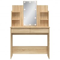 Makeupbordet med spejl og LED-lys har et tidløst og raffineret look. Det er et glimrende supplement til din soveværelsesindretning, samtidig med at det holder din makeup inden for rækkevidde.