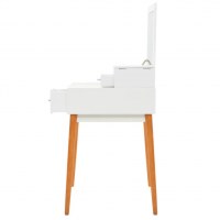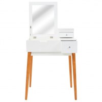 Dette bord er lavet af MDF og har et glasspejl. Det er forsynet med et panel, der kan løftes for at afsløre et spejl og rummelige smykkerum. Det tilbyder masser af plads til din kosmetik, hårprodukter og hudplejeprodukter. Når spejlet ikke er i brug, bliver bordpladen så et ideelt sted til et udvalg af makeup, smykker og skønhedsprodukter. De robuste træben øger også stabiliteten samt den moderne stil fra midten af århundredet.
