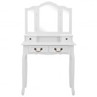 Sminkebordssæt med taburet 80x69x141 cm kejsertræ hvid