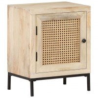 Sengebord 40x30x50 cm massivt mangotræ og naturligt rørflet
